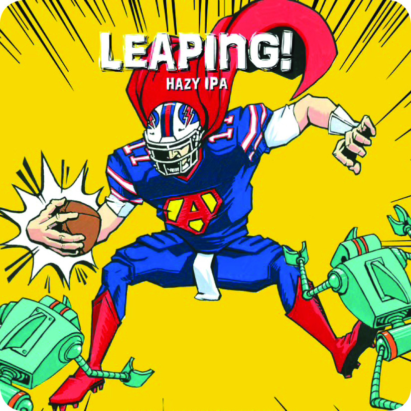 When it comes to football in Western New York, one player Leaps over everyone else. This season, while enjoying your favorite team, experience a Hazy IPA that leaps over all others. Bursting with tropical fruit flavors, Leaping Hazy IPA will get you ready for a championship run! Brewed with love along with Pale, Oat and Chit Malts; Flaked Oats; Flaked Wheat; Mosaic and Talus Hops.