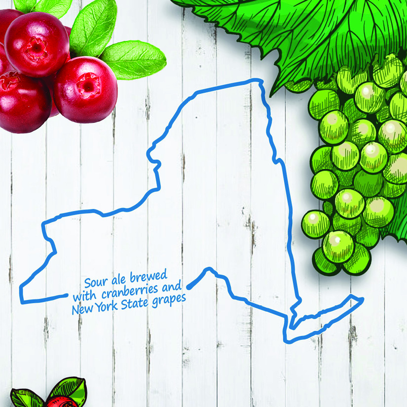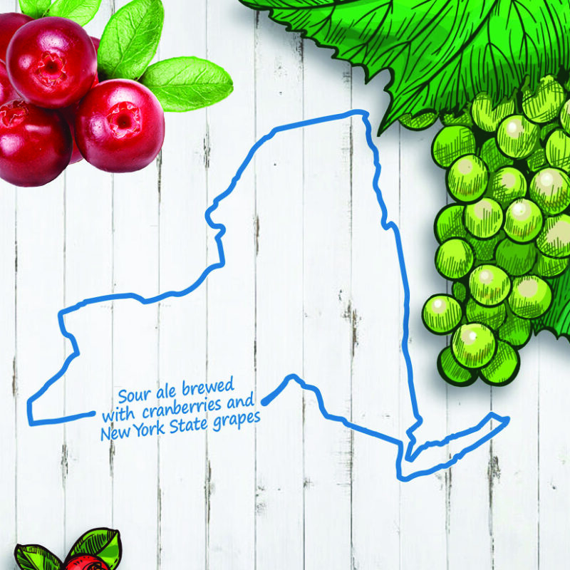 Celebrate Local with this tasty treat! Niagara grapes have been grown in New York State since 1882 and are known for their very sweet taste and vigorous growth. Combined with deliciously tart cranberries, these green grapes make for a tasty combination in this delightfully tart offering. Brewed with love along with NYS Erie Canal Pale, Two-Row Pale and White Wheat Malts; Flaked Oats; Idaho 7 Hops; NYS Grape and Cranberries.